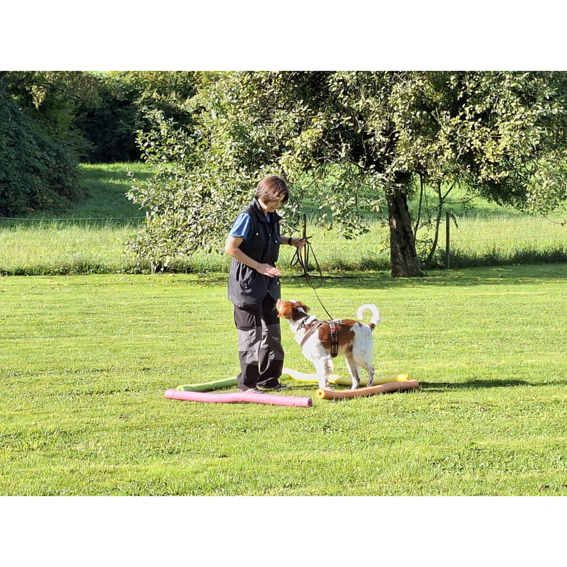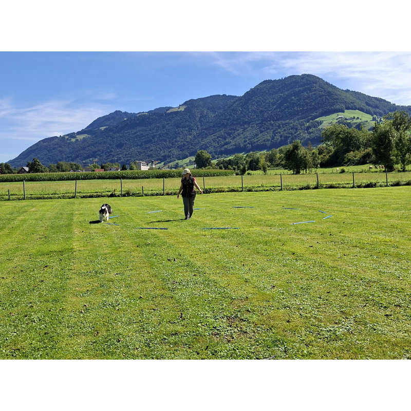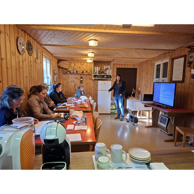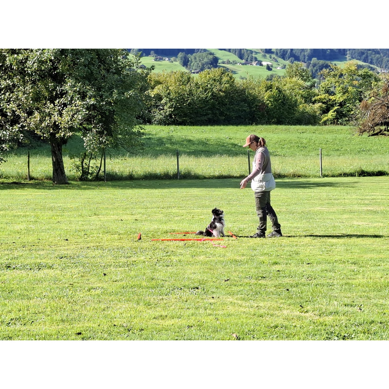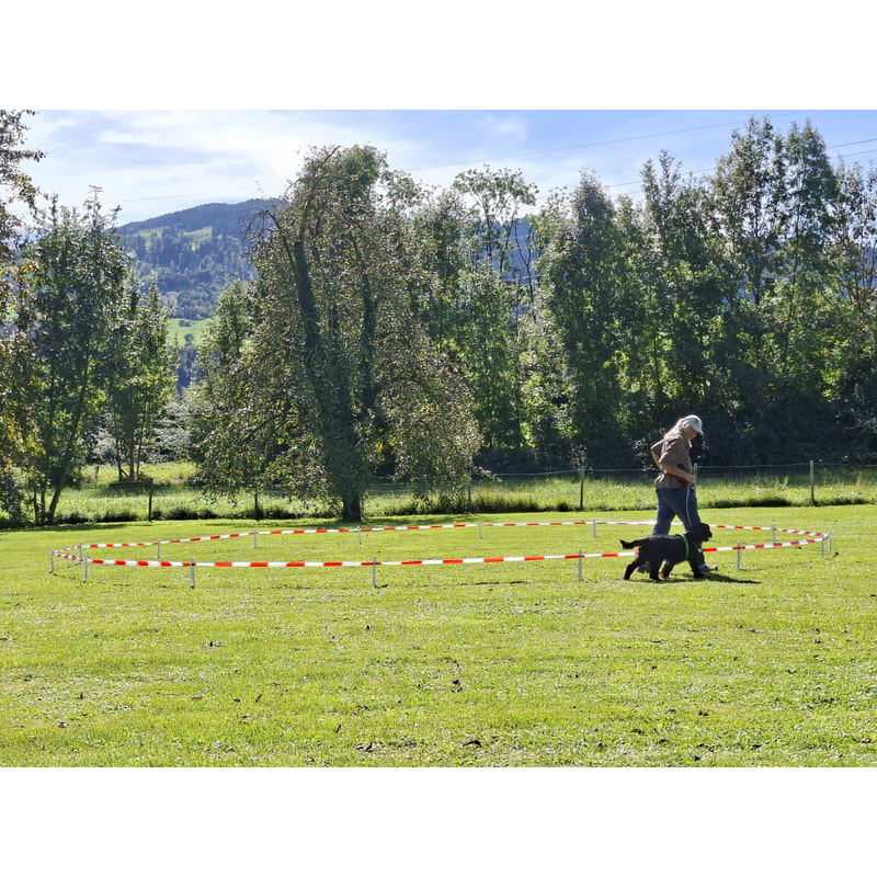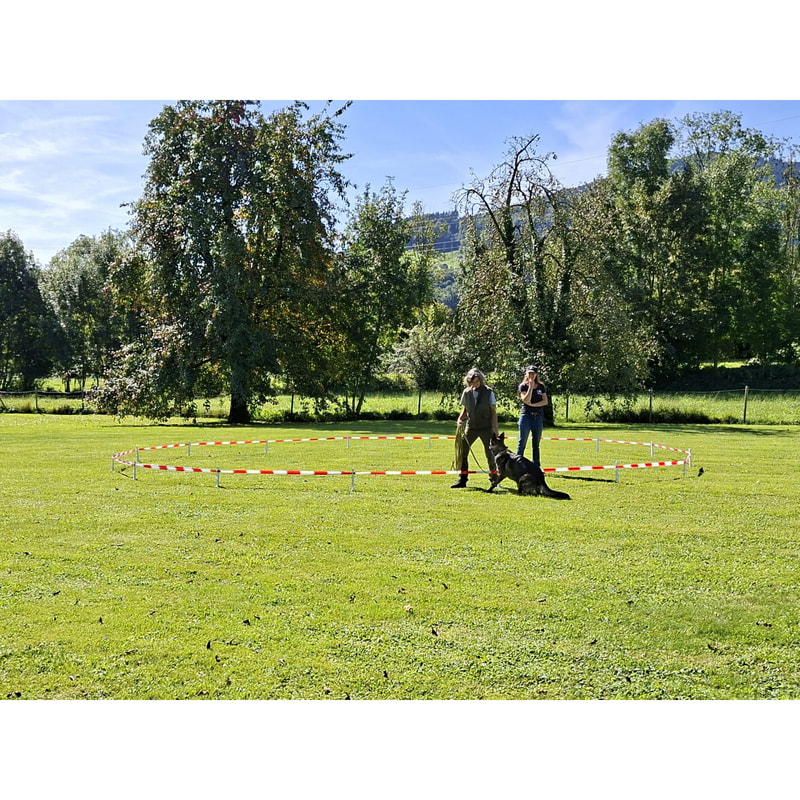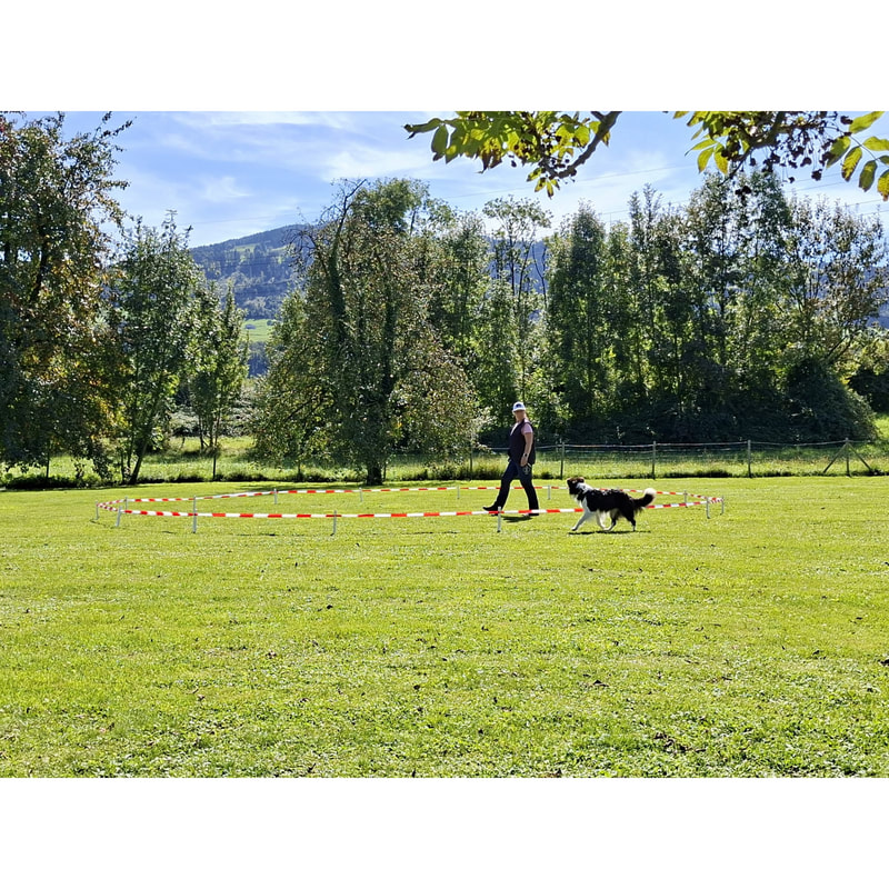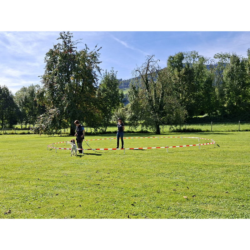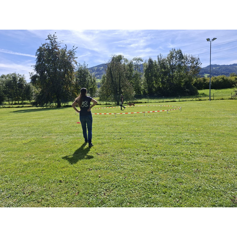 Unsere Seminarleiterin Jasmin Ulrich führte uns mit einer grandiosen PowerPoint-Präsentation an das Thema Longieren heran und im Anschluss lud sie die Gruppe zur praktischen Arbeit auf den Platz ein und leitete die Mensch-Hund-Teams sehr kompetent und mit viel Herz an. Alle fühlten sich wohl, gut betreut und man konnte auch bereits erste Entwicklungsschritte erkennen.